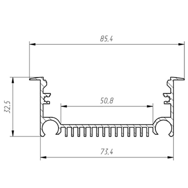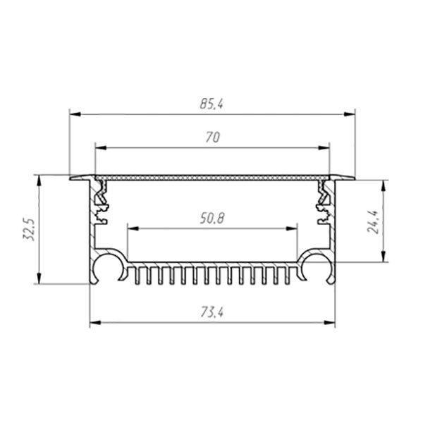 Профіль виготовлений із міцного алюмінію, який ефективно відводить тепло, запобігаючи перегріву світлодіодів та продовжуючи їх термін служби. Він може бути доповнений матовим розсіювачем та іншими аксесуарами для створення естетичного освітлення. Це ідеальне рішення для декоративного та функціонального освітлення в інтер'єрах житлових та комерційних приміщень.