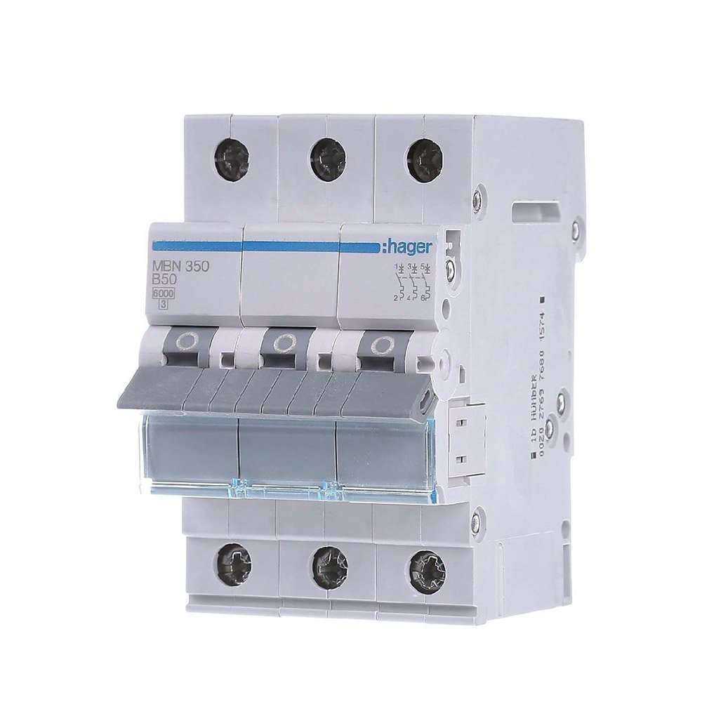 - Висока продуктивність: з номінальним струмом 50A та максимальним струмом короткого замикання 6kA, вимикач Hager MBN350 забезпечує ефективний захист електричної системи від перевантажень та короткого замикання.