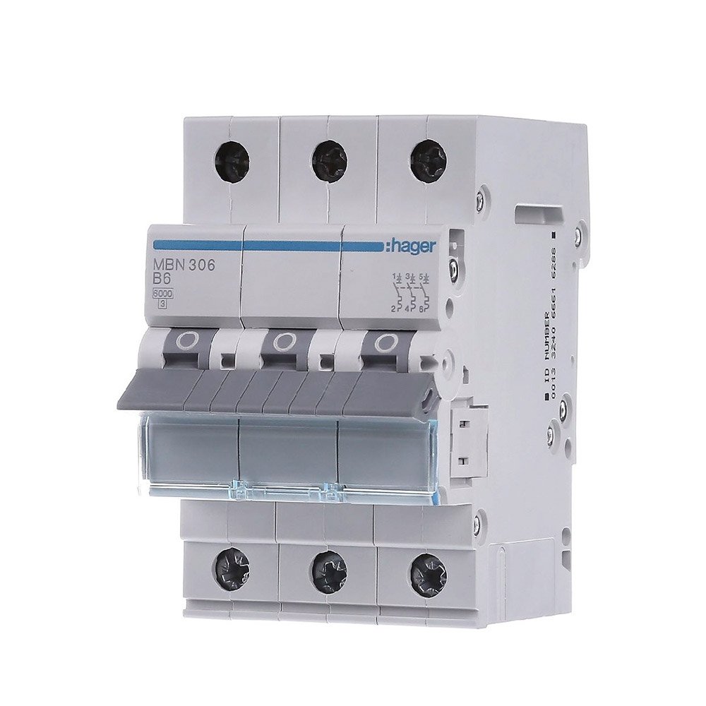 Автоматичний вимикач Hager 3-полюсний, 6A , B, 6kA, MBN306