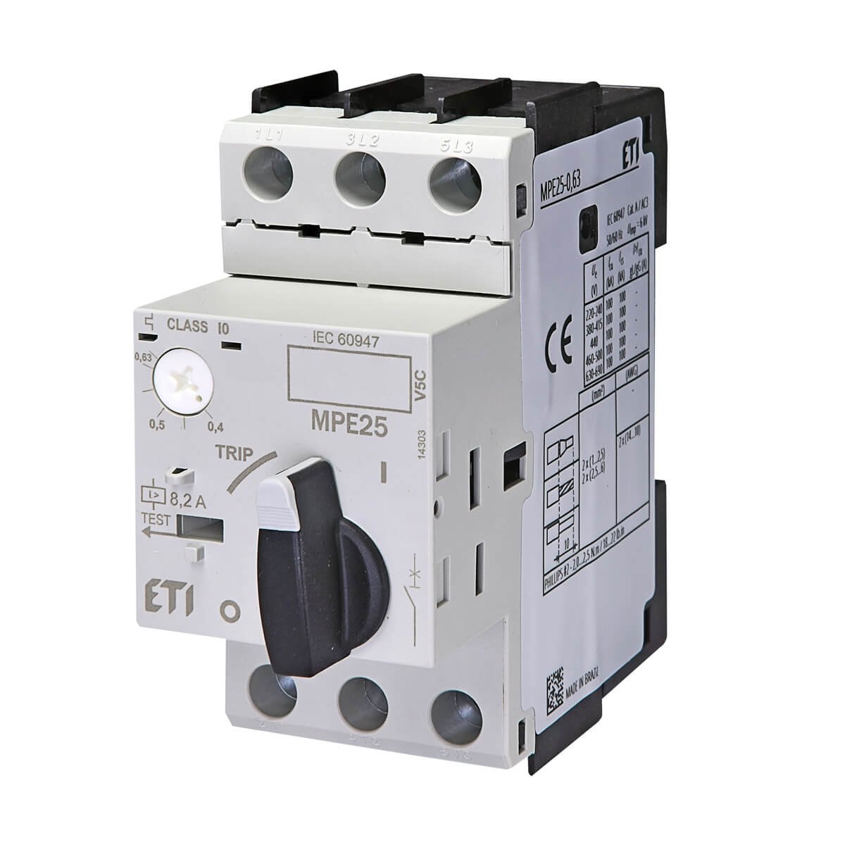 Автоматичний вимикач Eti MPE 25-0,63 (каталожний номер 4648004) призначений для пуску електродвигунів невеликої потужності та