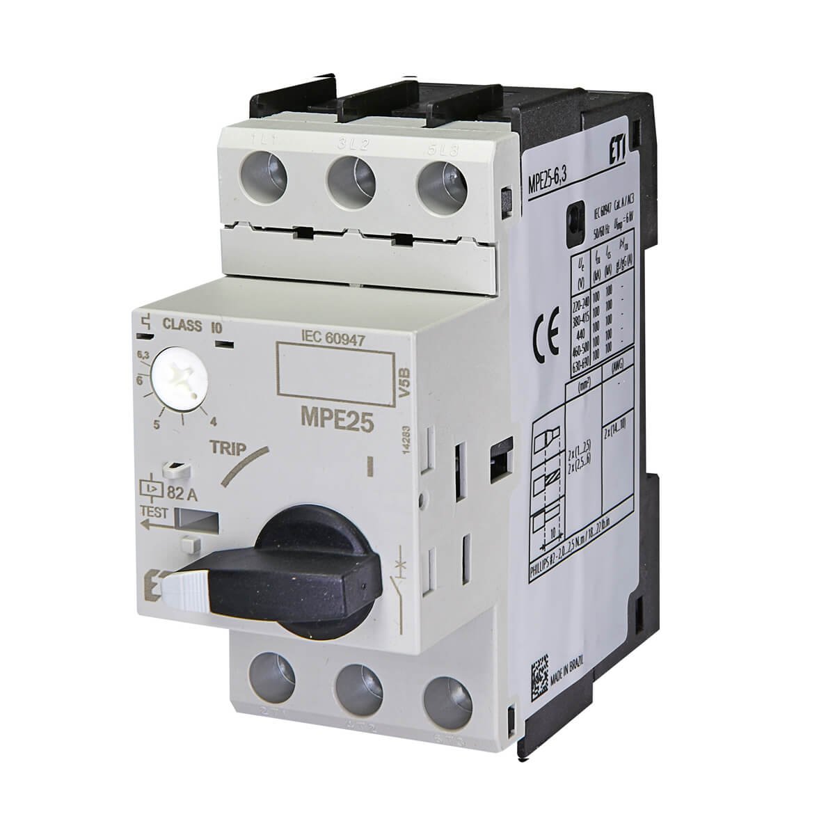Автоматичний вимикач Eti MPE 25-6,3 (каталожний номер 4648009) призначений для пуску електродвигунів невеликої потужності та