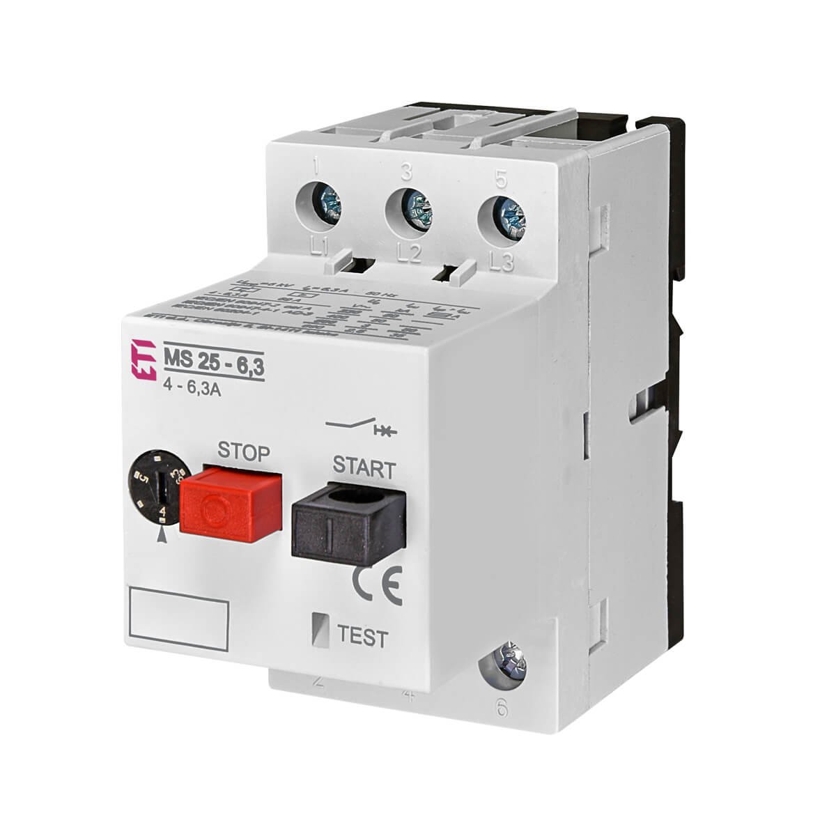 Автоматичний вимикач Eti MS 25-6,3 (каталожний номер 4600090) призначений для пуску та захисту електродвигунів невеликої потужності.