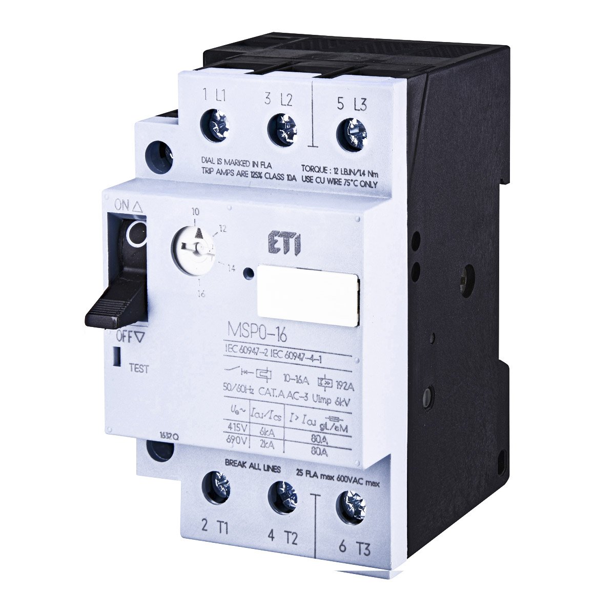 Автоматичний вимикач захисту електродвигуна ETI MSP0-16 (код для замовлення 4646625) призначений для пуску електродвигунів до 7,5kW та захисту його від струмів коротких замикань та перевантажень.