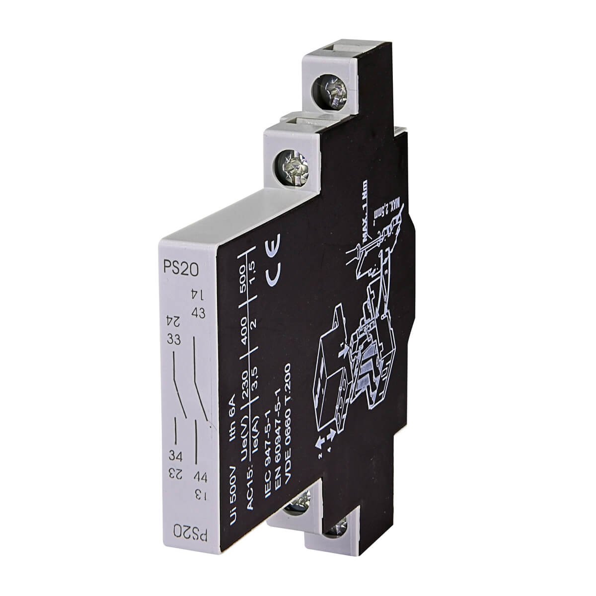 Блок контактів PS 20 служить для монтажу на бічні сторони автоматичного вимикача захисту двигуна ETI MS-25.