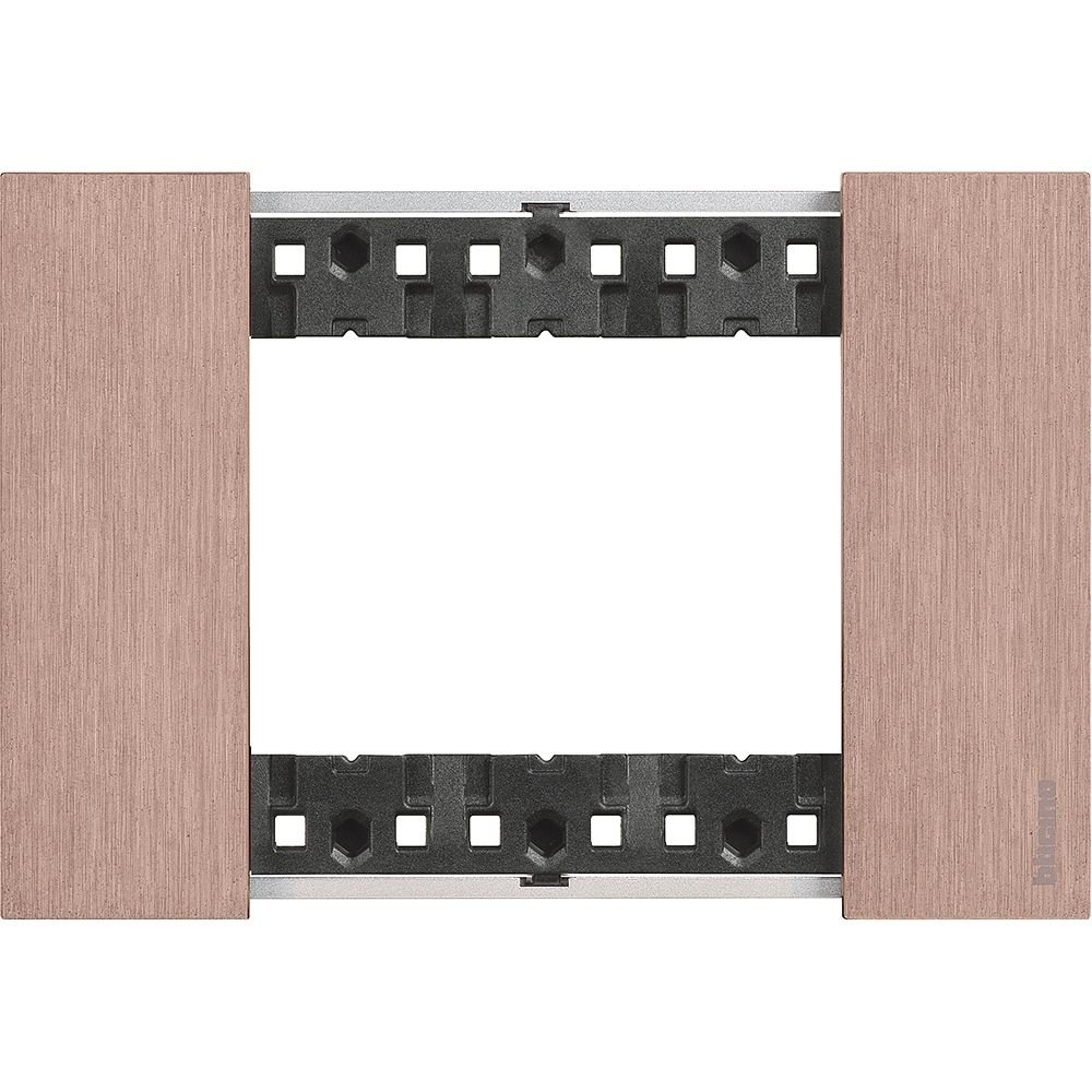 Декоративна рамка Bticino Living Now (3 модуля), колір мідь KA4803ZM, ідеально підходить для використання в будинках, офісах та новобудовах. Завдяки прихованому монтажу, вона гармонійно вписується в сучасні інтер'єри та системи розумного дому.