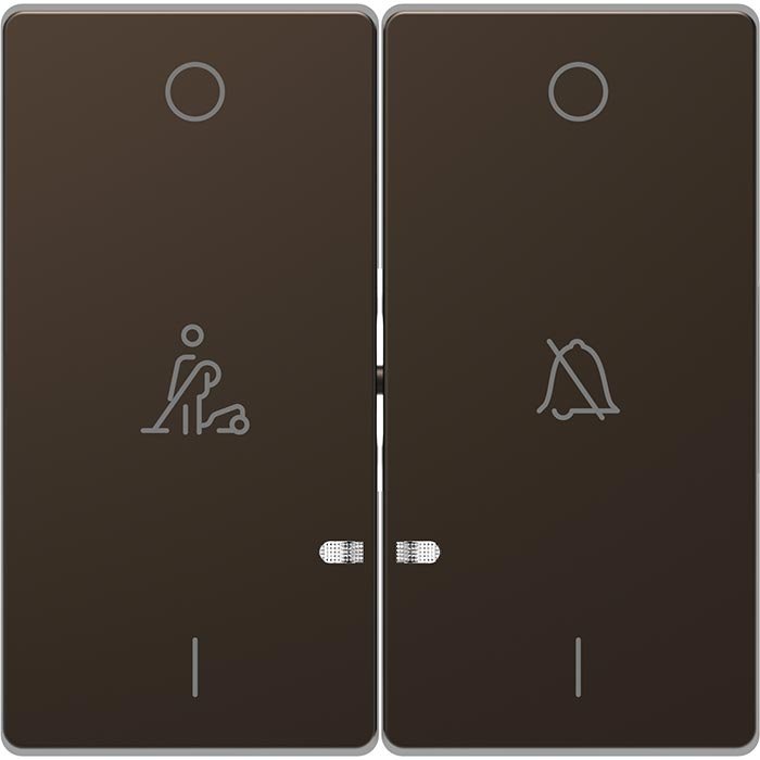 Подвійна клавіша з піктограмами «перекреслений дзвінок» і «покоївка». Використовується для вимикачів: 2-клавішних механізмів вимикача і 2-клавішного кнопкового вимикача.– Механізми для клавіші потрібно придбати окремо.