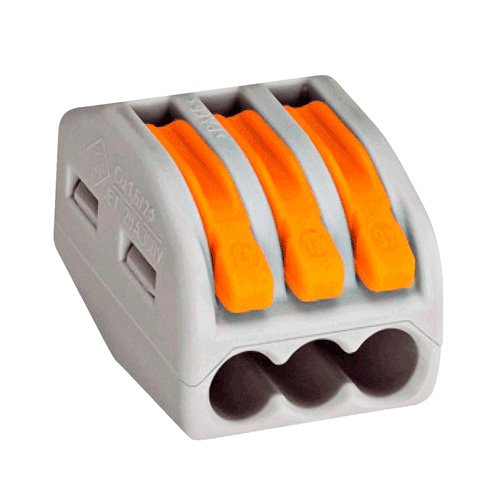 Клемник Wago 3 (монолітні або багатожильні дроти) х 0,08-4 мм 32A Cu (222-413)
