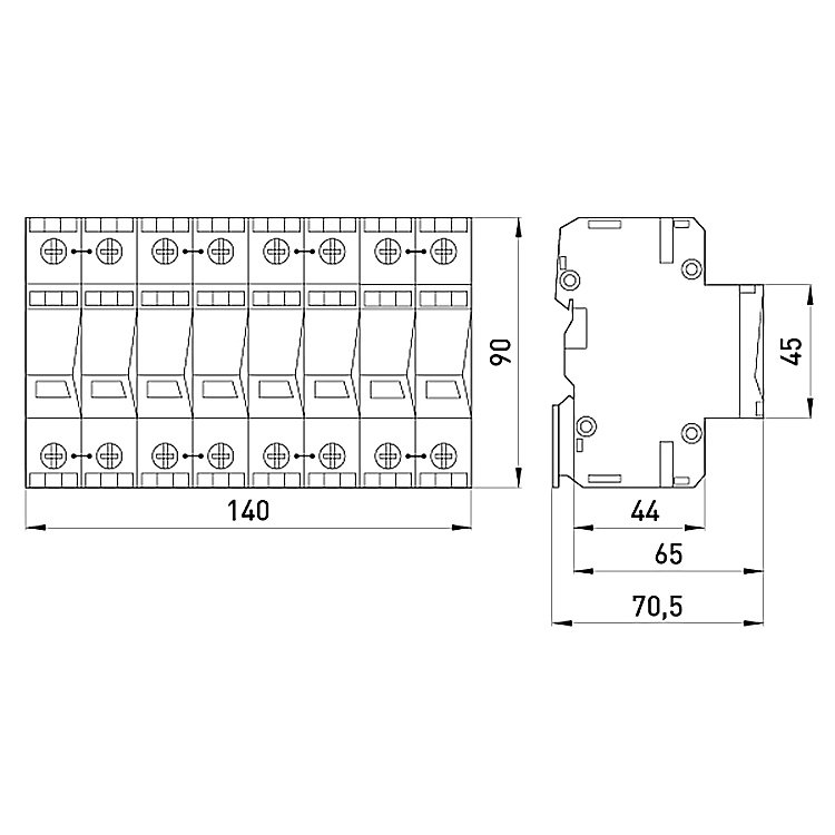 - Займає 8 модулів на DIN-рейці
