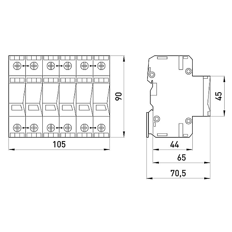 - Кількість місця, що займається на din-рейці в щиті: 6