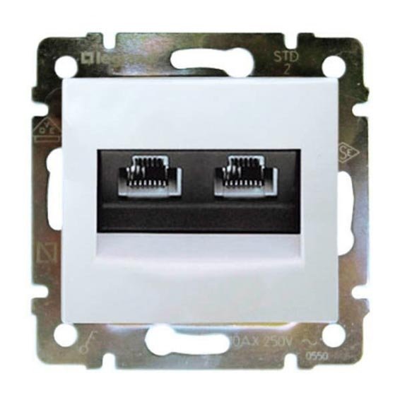 Комп'ютерна розетка 5 категорії, UTP має два виходи RJ45, застосовується для інформаційних мереж.– Механізм і лицьова панель розетки йдуть в комплекті.