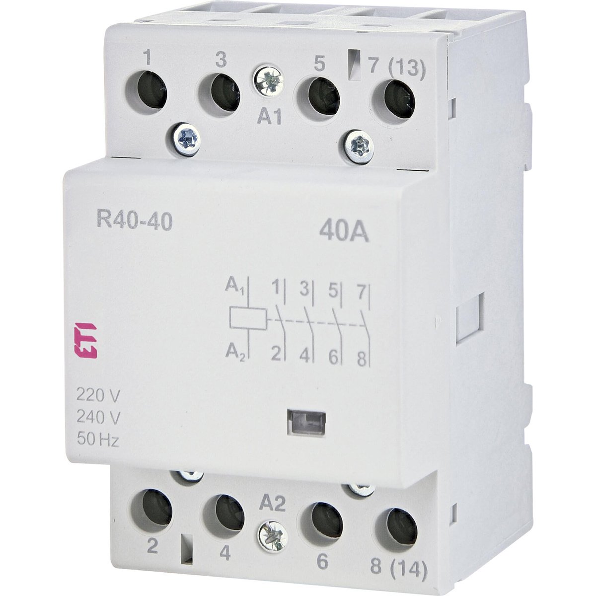 Контактор модульний R 40-40 230V AC використовується для дистанційного керування та автоматичного контролю електричних пристроїв та обладнання в системах освітлення, системах опалення, вентиляції, комутації двигунів невеликої потужності тощо.