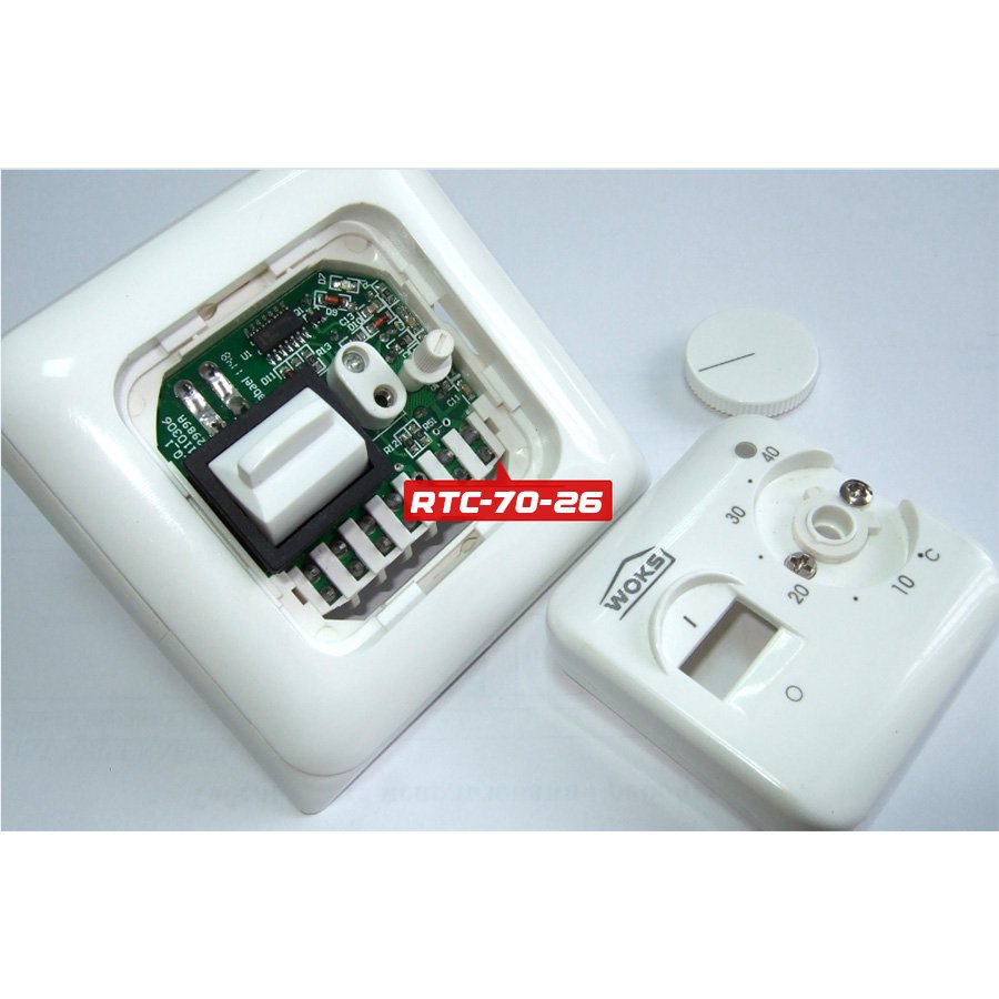 Механічний терморегулятор Woks RTC-70.26 для теплої підлоги з ручним налаштуванням забезпечує підтримку комфортної температури, автоматично регулюючи подачу напруги в залежності від показань вбудованого термодатчика. Пристрій враховує вплив зовнішніх факторів, таких як сонячне випромінювання та робота побутових приладів, що дозволяє більш точно підтримувати задану температуру. Можливе налаштування діапазону регулювання температури для максимальної зручності.