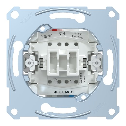 Механізм Merten 2-кнопкового 1-полюсного вимикача з 1 розмикаючим та 1 замикаючим контактом.