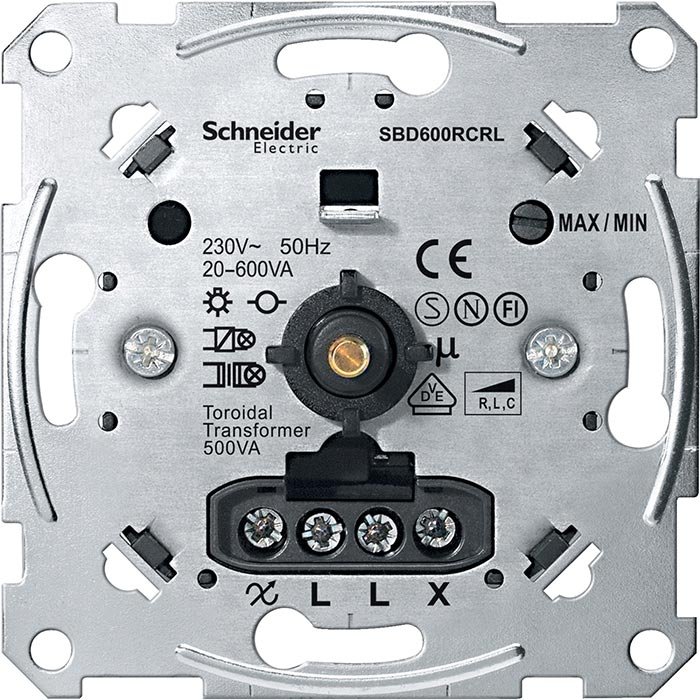 - Типи керованих навантажень: Обычные лампы накаливания, Галогенные лампы — 230 V~, Низковольтные галогенные лампы с обмоточными (обычным) трансформатором, Низковольтные галогенные лампы с электронным трансформатором