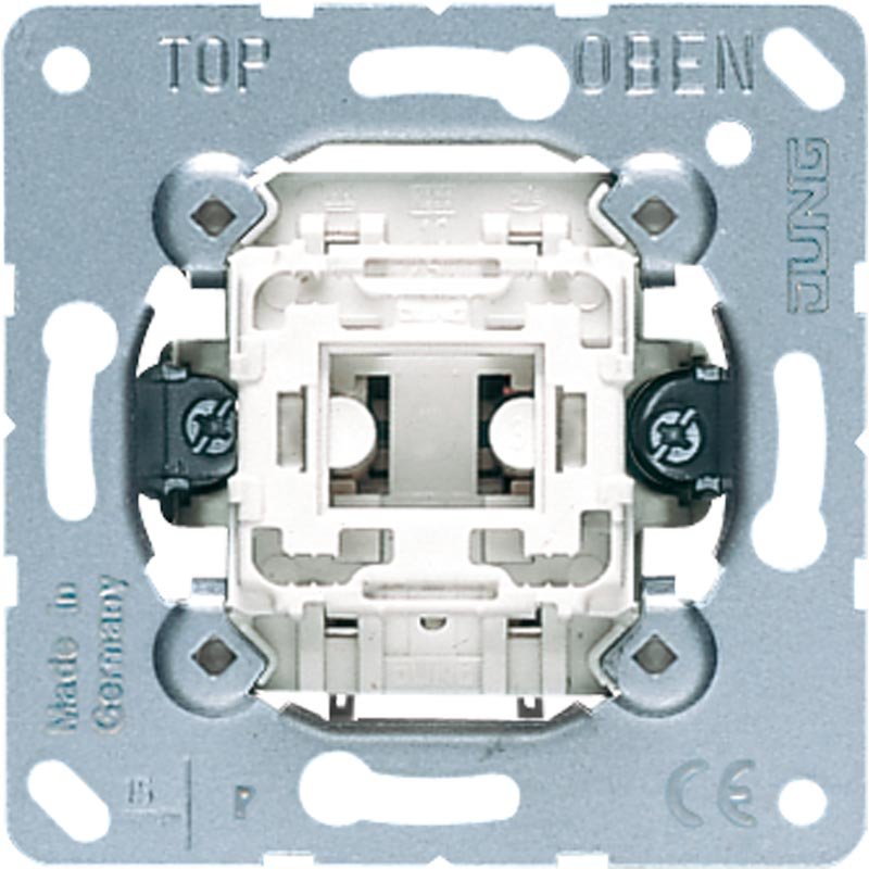 Механізм кнопкового 1-клавішного балансирного вимикача для одинарних клавіш виробництва Jung.Можливе підсвічування в положенні ВИМК. – з лампочками артикул-90/95 (230V), 96 - ... (низька напруга) або світлодіодними лампочками арт. 90-LED. (230V) або 961248 LED (низька напруга).