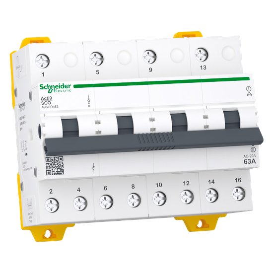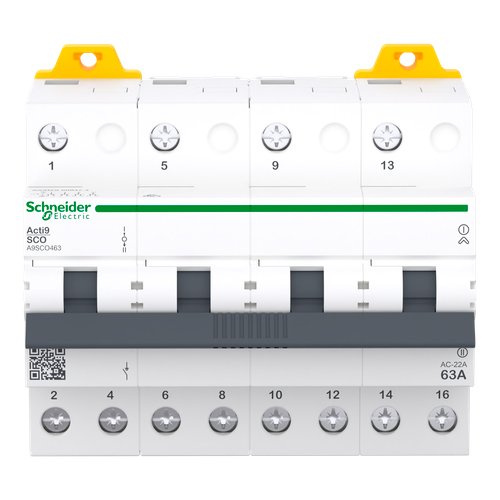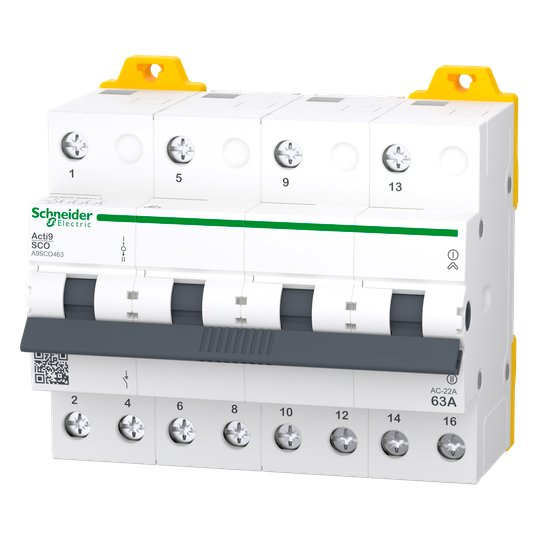 - Перемикач iSSW Acti9 A9SCO463 призначений для встановлення у нових будівлях або таких, що потребуються реновації.