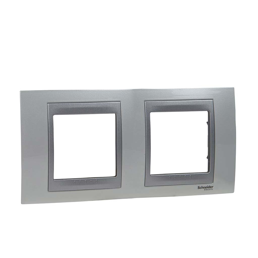 Рамка 2-а Unica Top металева, горизонтальна "білий/алюміній" Schneider Electric MGU66.004.092