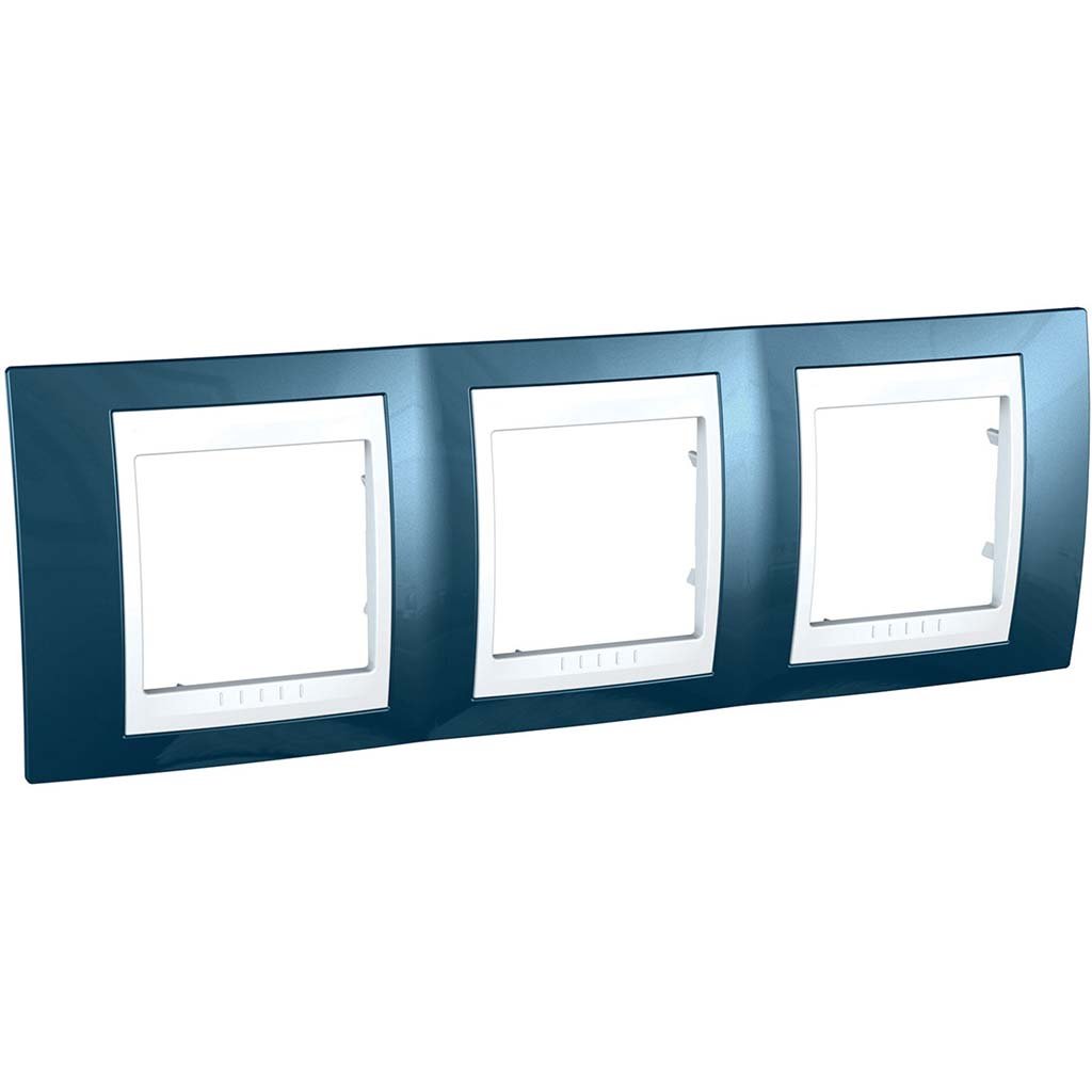 Рамка 3-а Schneider Electric Unica «Plus» MGU6.006.854, колір "Білий / Блакитний лід"