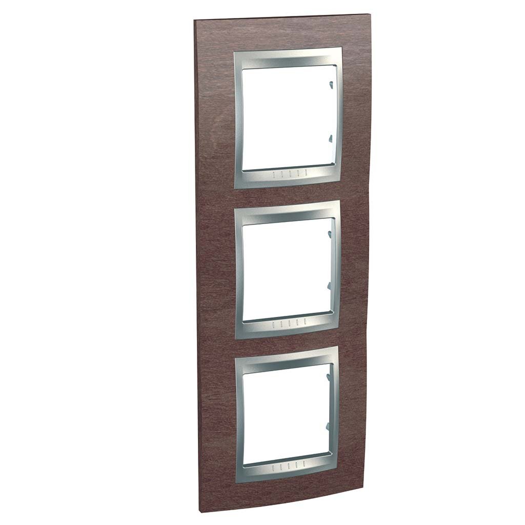 Рамка 3-а Unica Top дерев'яна, вертикальна "тютюн/алюміній" Schneider Electric MGU66.006V.0M4