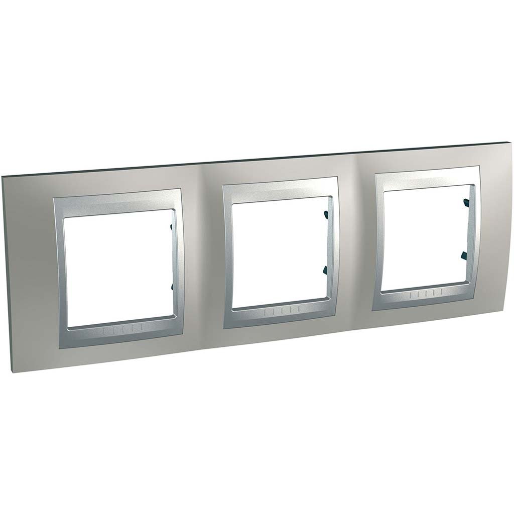 Установча рамка з натурального металу, на 3 місця для механізмів Уніка.Характеристики: