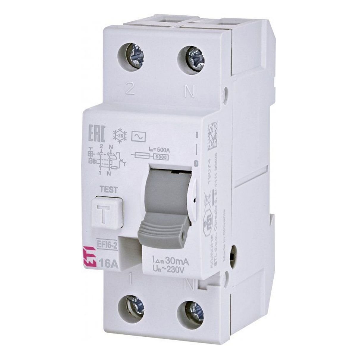 Серія ETI EFI6-P2 має зрозуміле чітке маркування виробу, що інформує про всі основні характеристики пристрою.