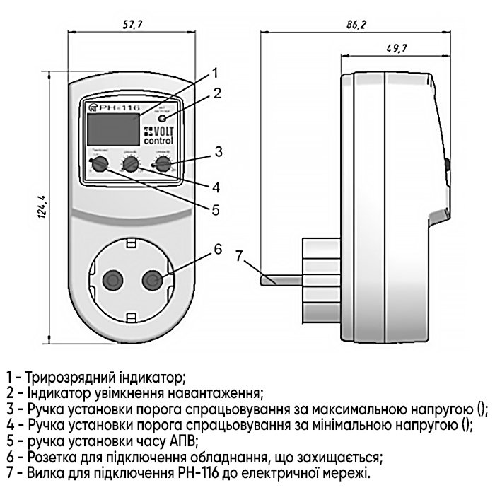 - Особливості: Побутове, Захист напруги, Контроль напруги, Підключення у розетку, Промислове