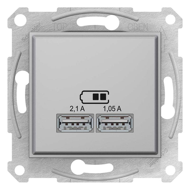 Розетка 2-а з USB виходами для зарядки Schneider Electric SDN2710260, алюміній