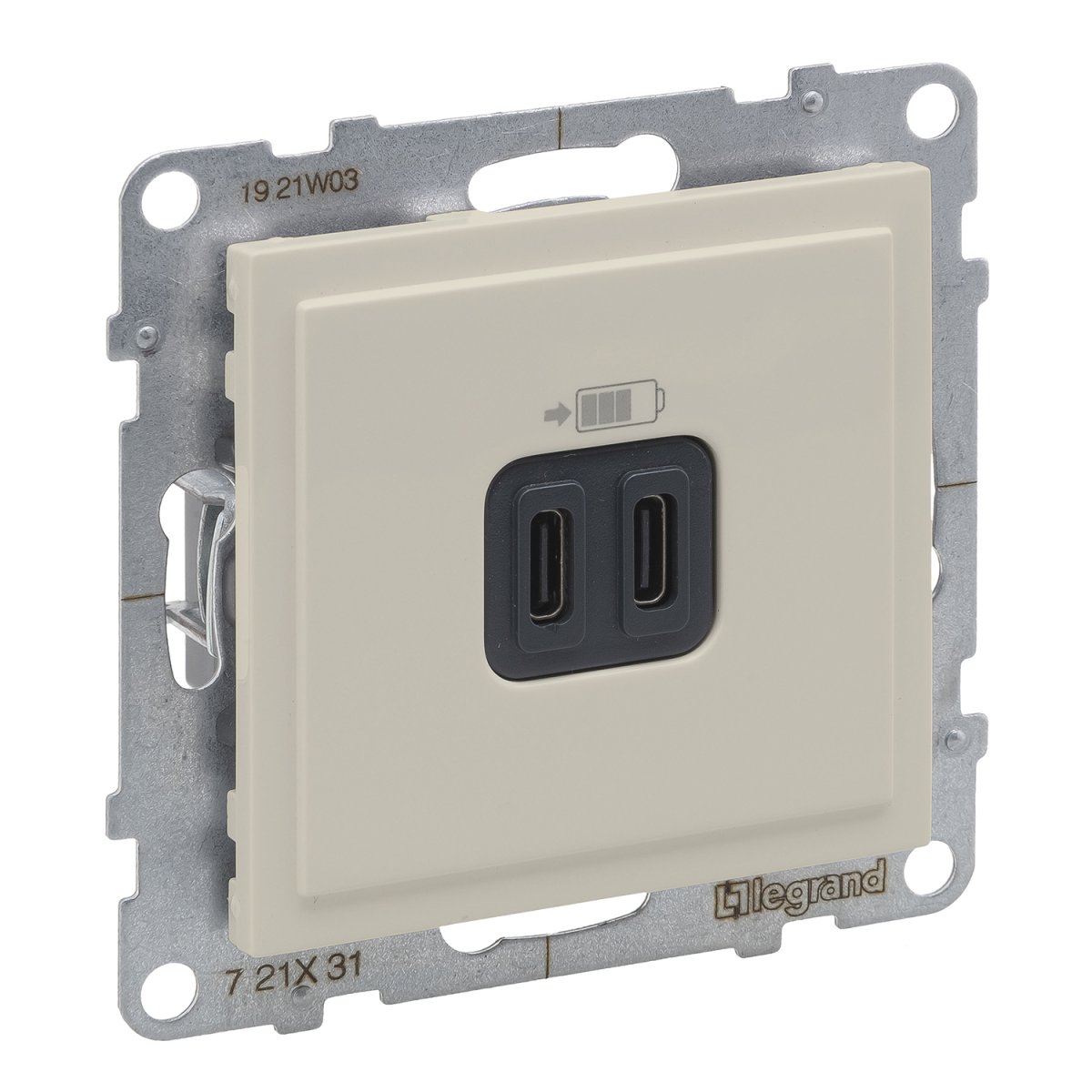 Розетка для заряджання USB С+C 15Вт/5V Legrand Suno 721231 слонова кістка