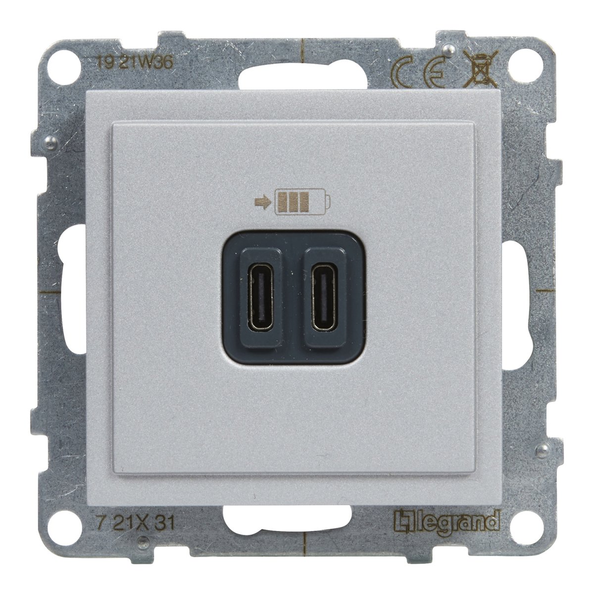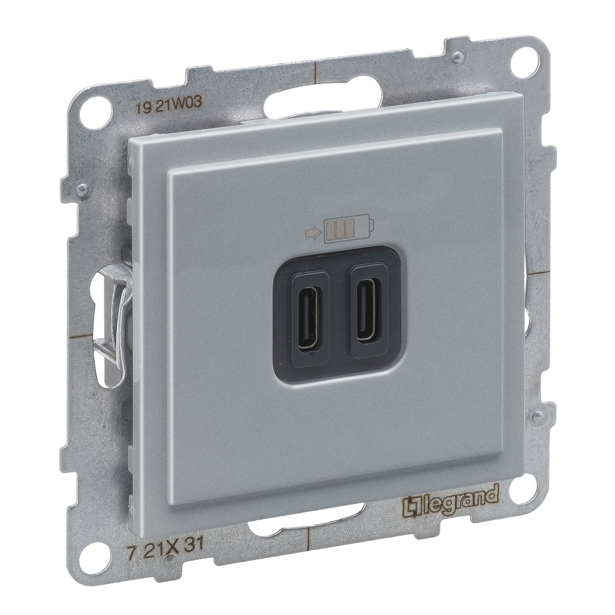 Розетка для заряджання USB С+C 15Вт/5V Legrand Suno 721331 алюміній