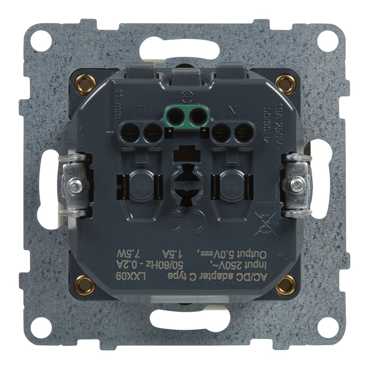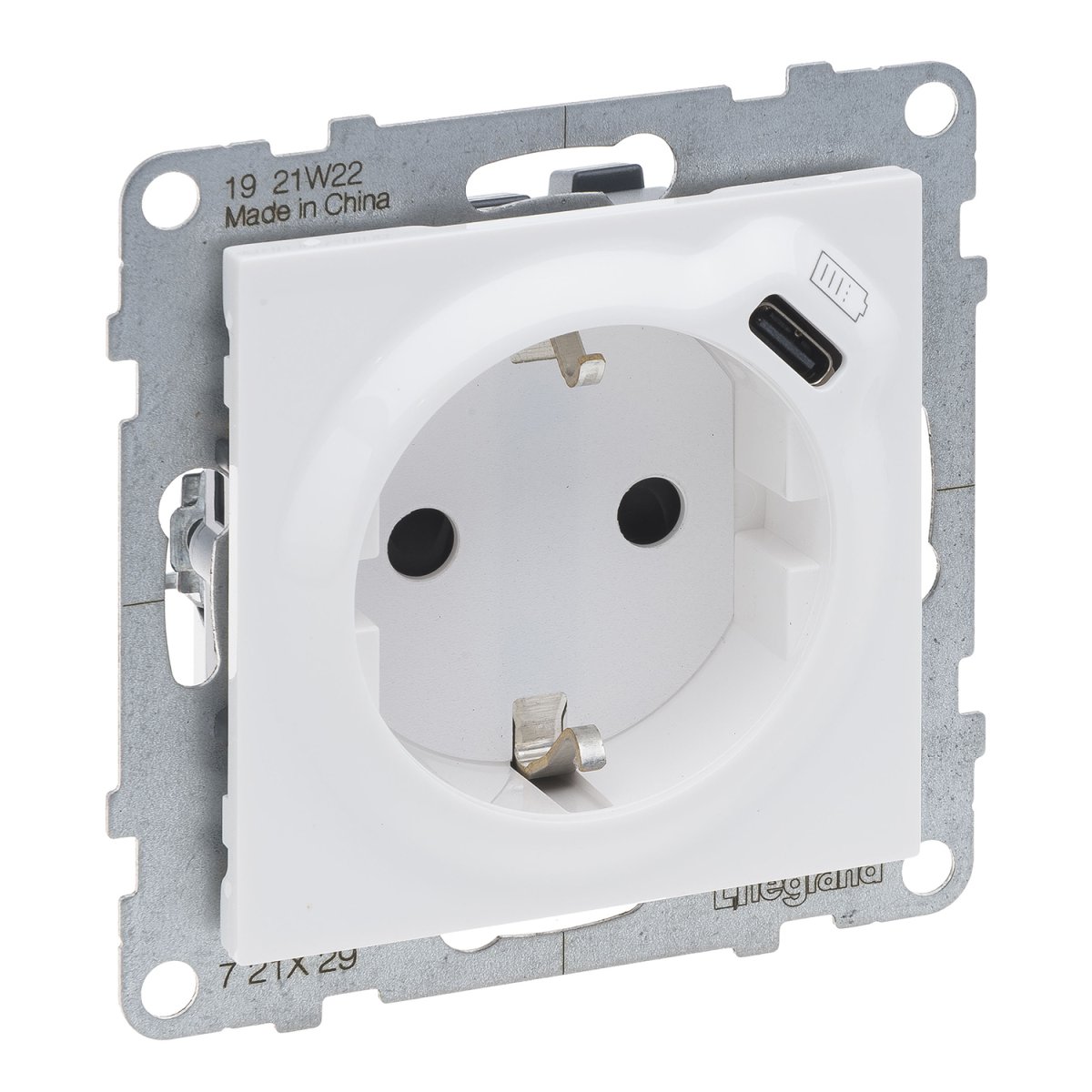Елегантна та функціональна розетка Legrand Suno із заземлюючим контактом і захисними шторками, доповнена USB Type-C виходом для зручної зарядки пристроїв. USB Тип C: 1,5 А - 5,0 В - 7,5 Вт макс. споживання в пасивному режимі <0,07Вт. Ідеально підходить для сучасного інтер'єру, забезпечуючи безпечність та комфорт.