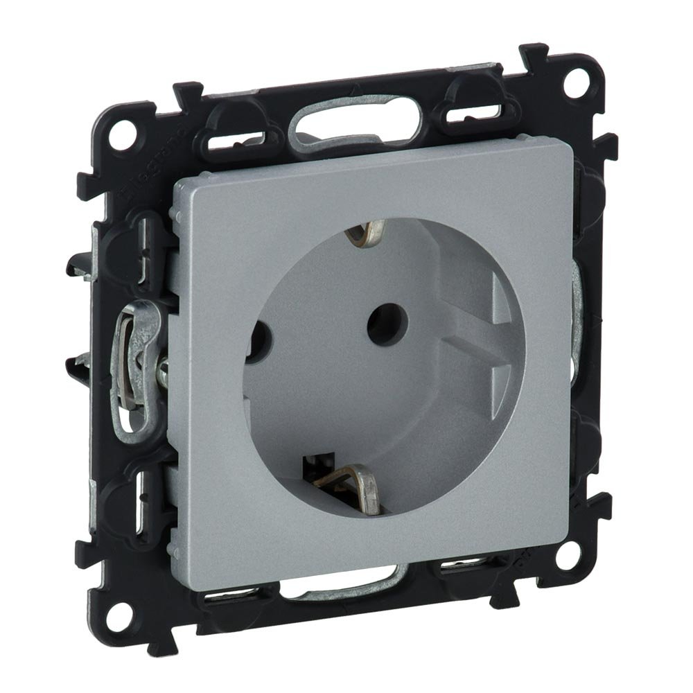 Розетка із заземленням, Legrand Valena Life 753621, самозатискні клеми, алюміній