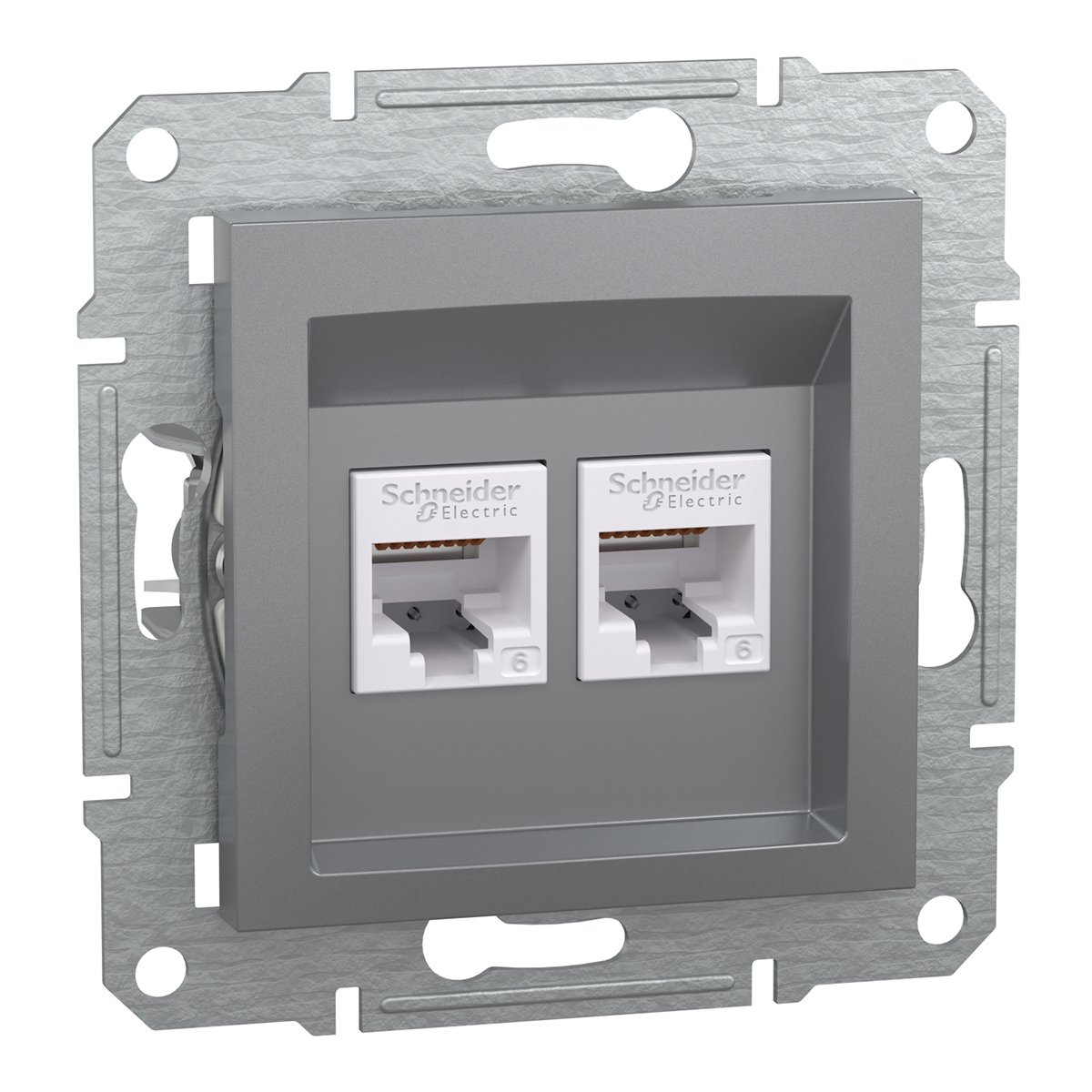 Розетка комп'ютерна 2-а RJ45 кат.6 / UTP «Asfora», (сталь) Schneider Electric EPH4800162