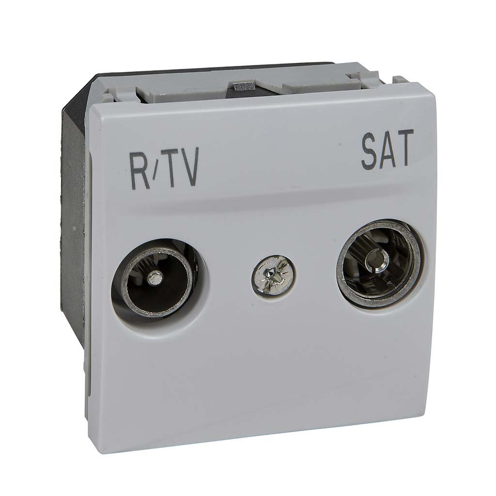 – Телевізійні розетки Unica c виходами TV-R-SAT призначені для під'єднання телевізійного кабелю та роботи в діапазоні частот 10 - 2400 МГц.– Корпус телевізійної розетки виконаний зі спеціального цинко-алюмінієвого сплаву Zamak, що забезпечує електромагнітне екранування пасивних елементів, укладених усередині, та дозволяє досягти оптимальних характеристик, необхідних для отримання якісного відеосигналу та аудіосигналу.