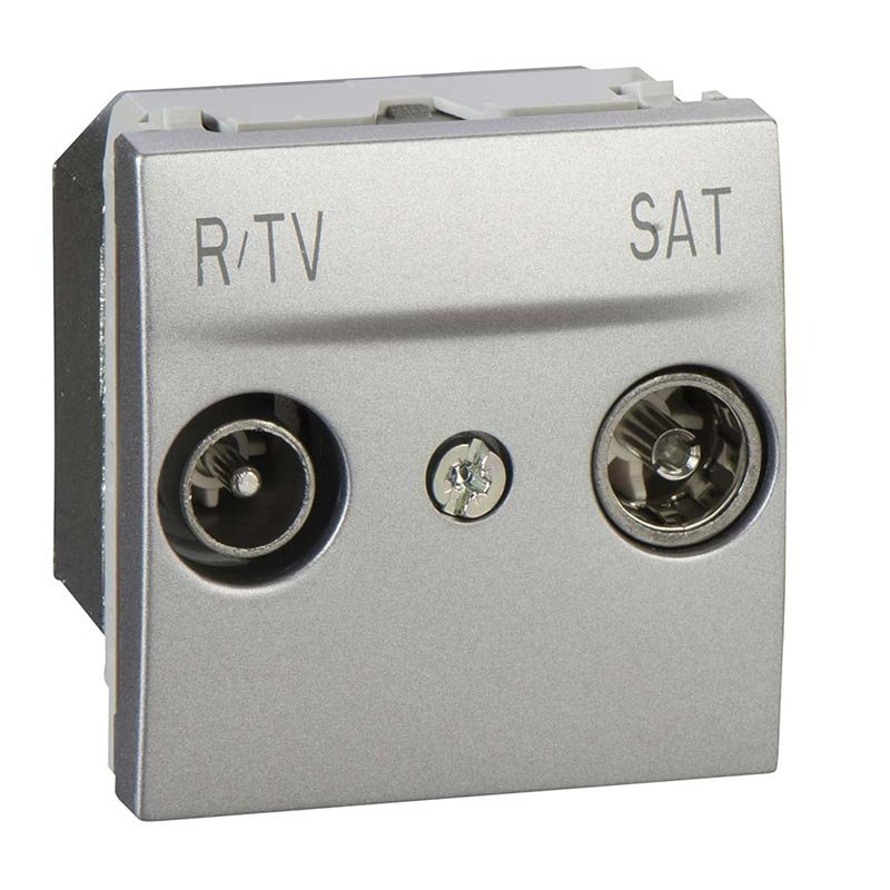 – Телевізійні розетки Unica c виходами TV-R-SAT призначені для під'єднання телевізійного кабелю і роботи в діапазоні частот 10 - 2400 МГц.– Корпус телевізійної розетки виконаний зі спеціального цинко-алюмінієвого сплаву Zamak, що забезпечує електромагнітне екранування пасивних елементів, укладених усередині, і дозволяє досягти оптимальних характеристик, необхідних для отримання якісного відеосигналу і аудіосигналу.