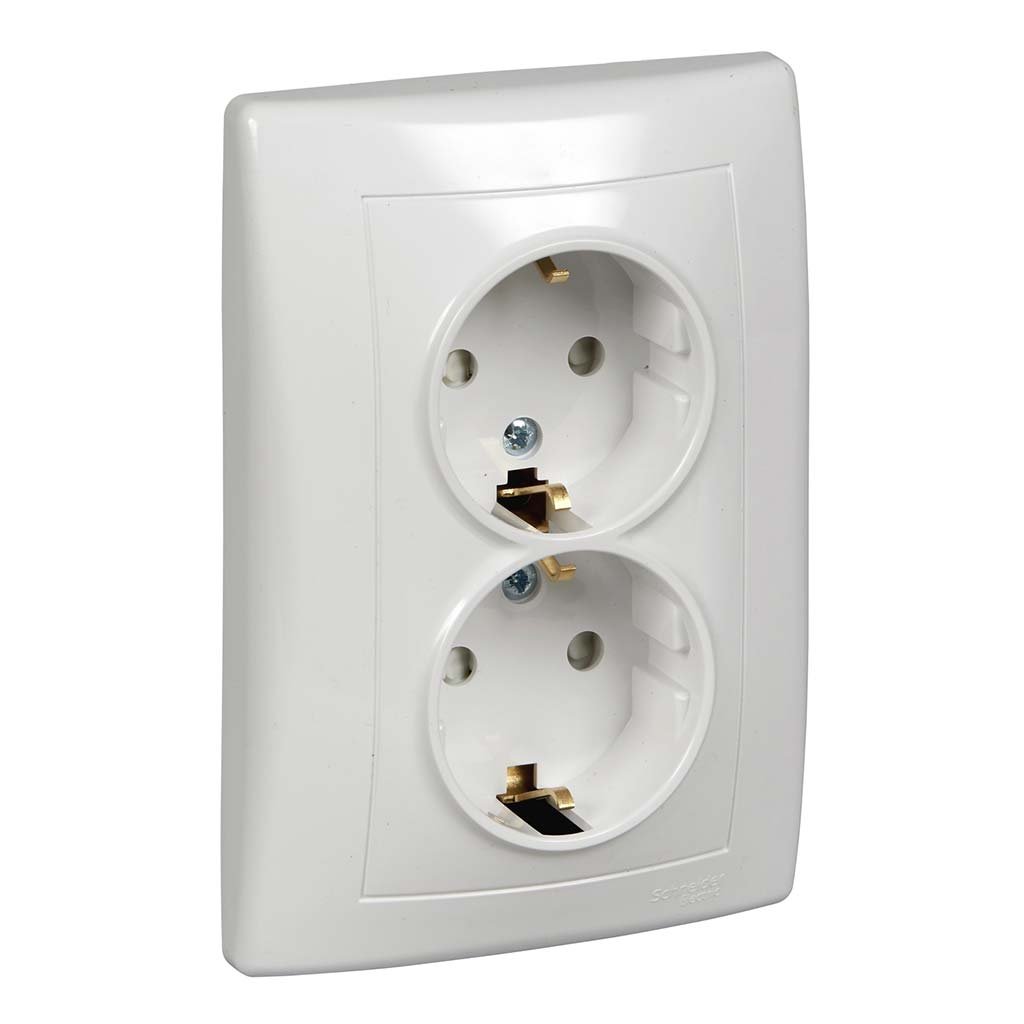 Розетка подвійна із заземленням і захисними шторками, Седна, Шнайдер Електрик.Характеристики: