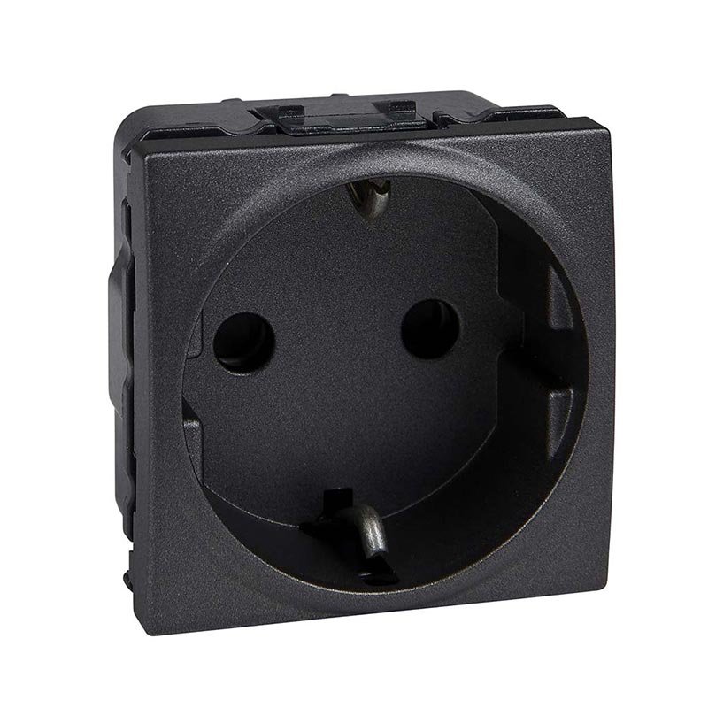 – Електрична розетка із заземлювальним контактом і захистом. Контакти розетки захищені спеціальними шторками - «захист від дітей».– 2 модуля.