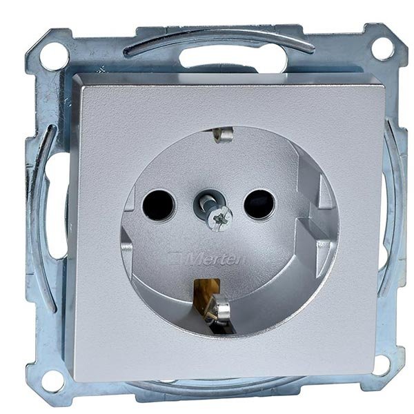 Розетка з заземленням і захисними шторками Merten SM MTN2300-0460 алюміній