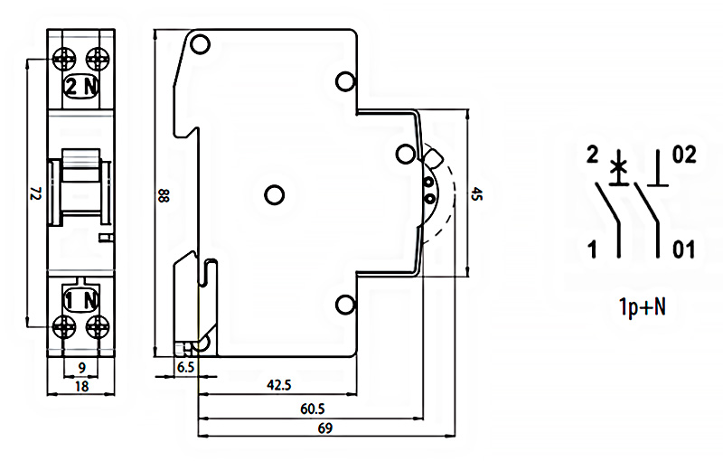 – 1p+N в одном модуле;– Индикация положения контактной группы;