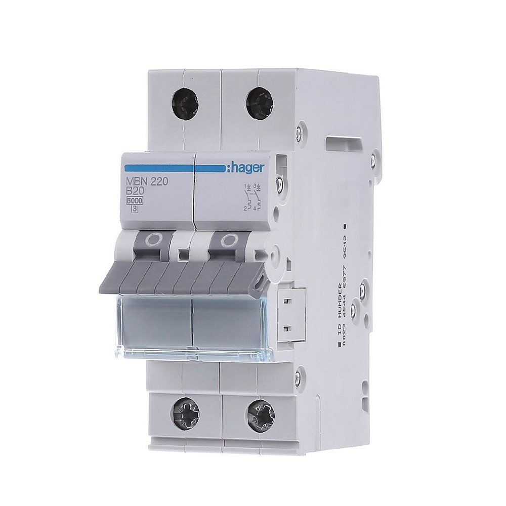 Автоматический выключатель Hager 2-полюсный, 20A , B, 6kA, MBN220
