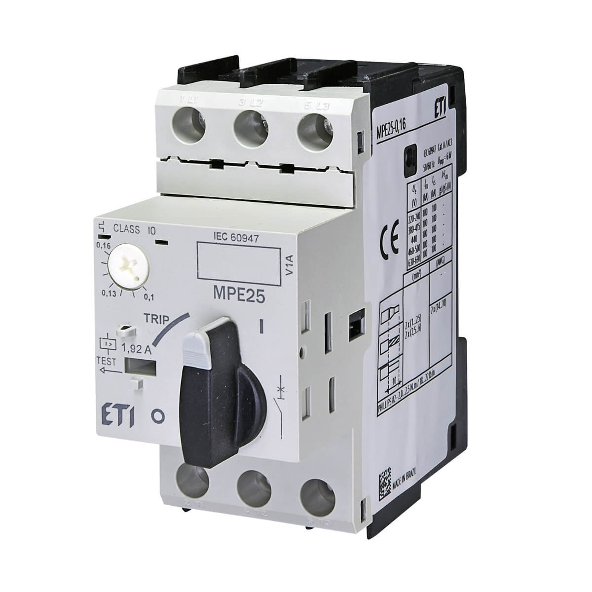Автоматический выключатель Eti MPE 25-0,16 (каталожный номер 4648001) предназначен для пуска электродвигателей небольшой мощности и