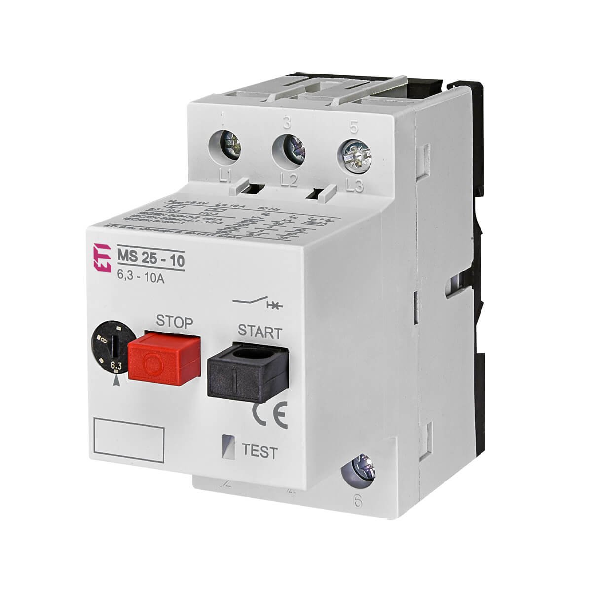 Автоматический выключатель Eti MS 25-10 (каталожный номер 4600100) предназначен для пуска и защиты электродвигателей небольшой мощности.