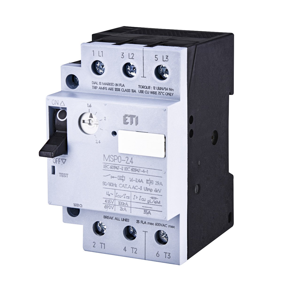 Автоматический выключатель защиты электродвигателя ETI MSP0-2,4 (код для заказа 4646621) предназначен для пуска электродвигателей до 0,75 kW и защиты его от токов коротких замыканий и перегрузок.