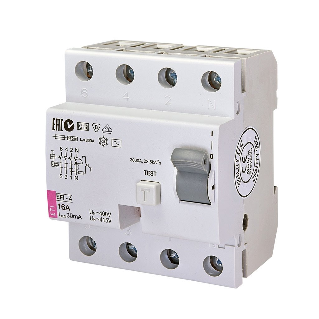 - УЗО EFI 4 имеют возможность пломбировки с помощью пломбировочных панелей. Кроме этого, корпус дифреле имеет механическую защиту от несанкционированного разбора устройства.