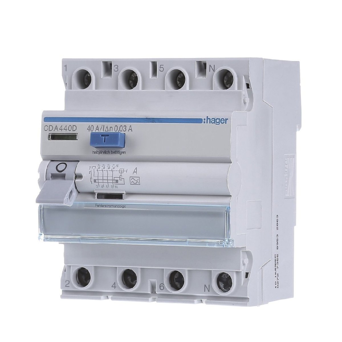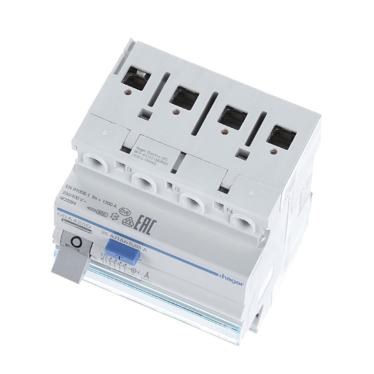 УЗО Hager CDA440D имеет клеммы подключения с защитой от вставки проводов и возможность маркировки непосредственно на устройстве.