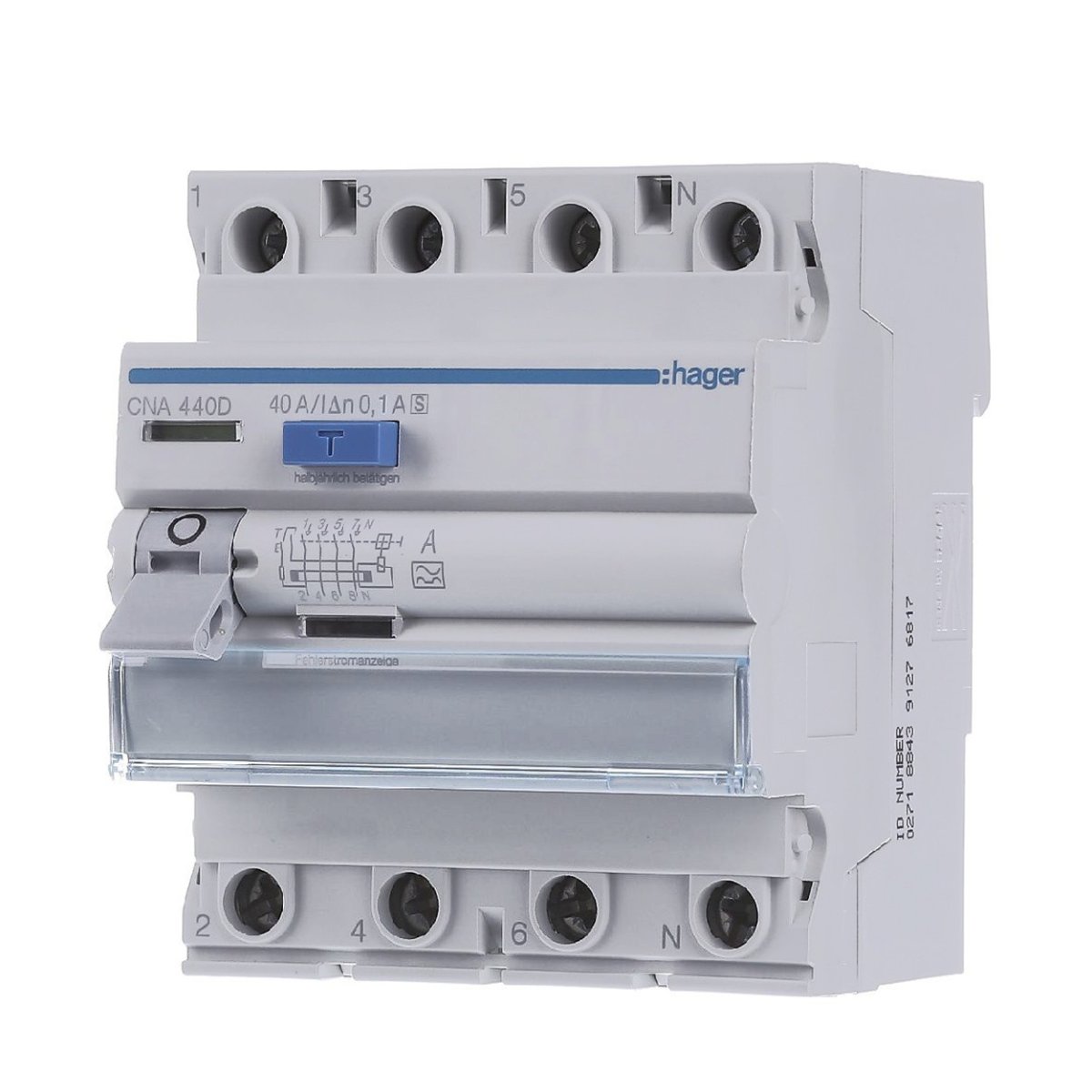 УЗО Hager CNA440D имеет клеммы подключения с защитой от вставки проводов и возможность маркировки непосредственно на устройстве.