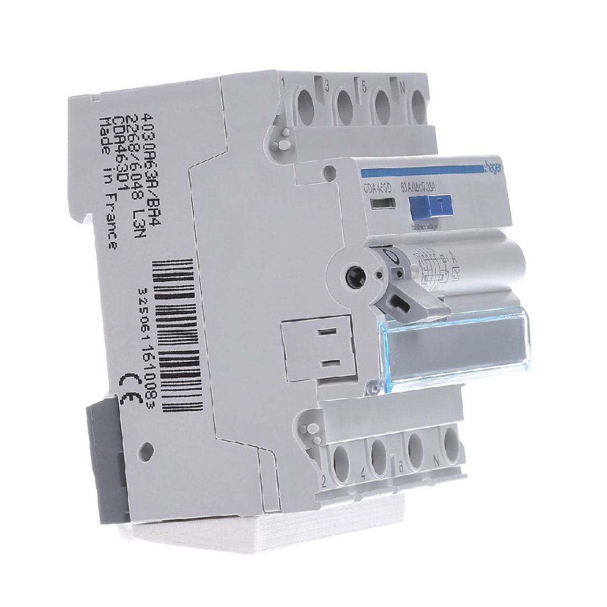 Дифференциальное реле 4P, 6kA, 63A,30mA, A, Hager CDA463D