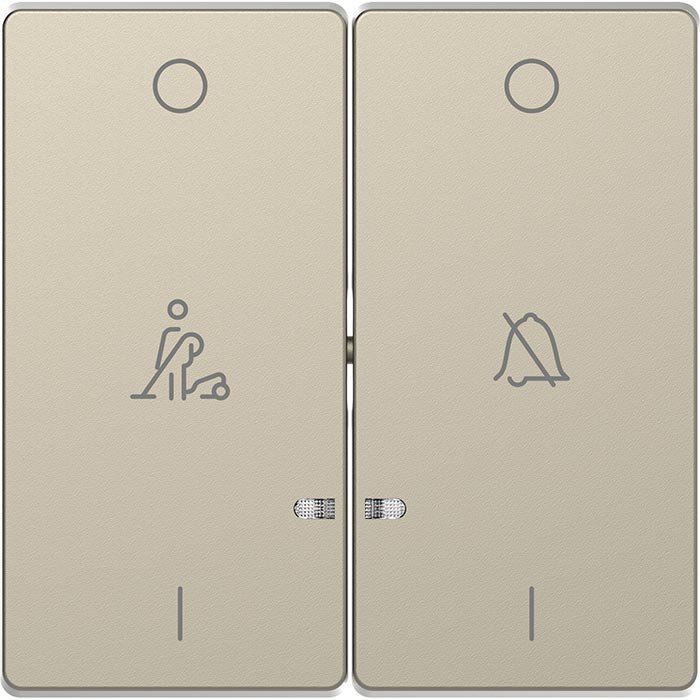 Двойная клавиша с пиктограммами «перечеркнутый звонок» и «горничная». Используется для выключателей: 2-клавишных механизмов выключателя и 2-клавишного кнопочного выключателя.