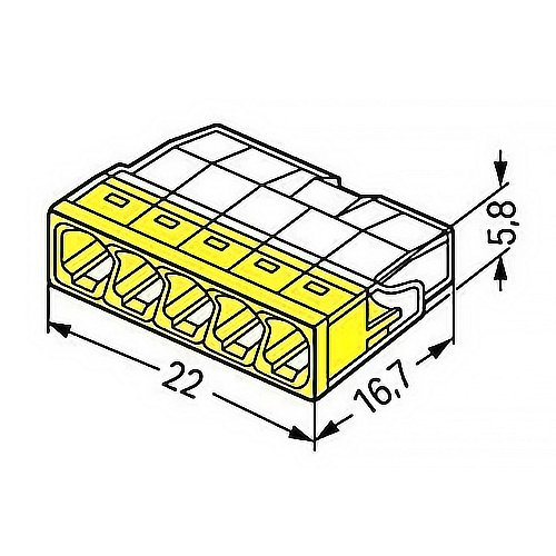 Описание и технические характеристики клеммника Wago 5 (монолитных), артикул 2273-205