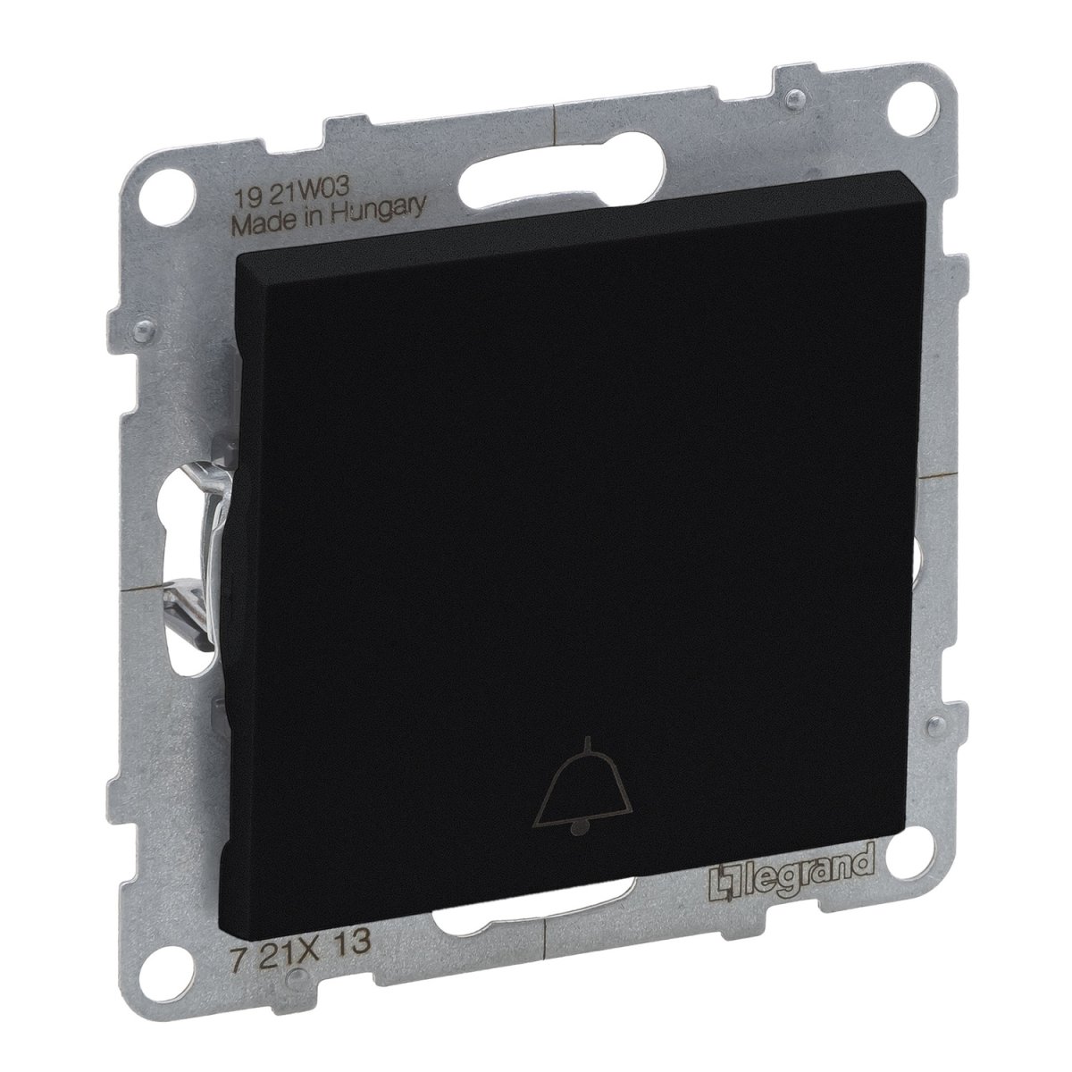 Кнопка 1-кл с символом "Звонок" (пружин.клеммы) 6A/250V Legrand Suno 721413 черный