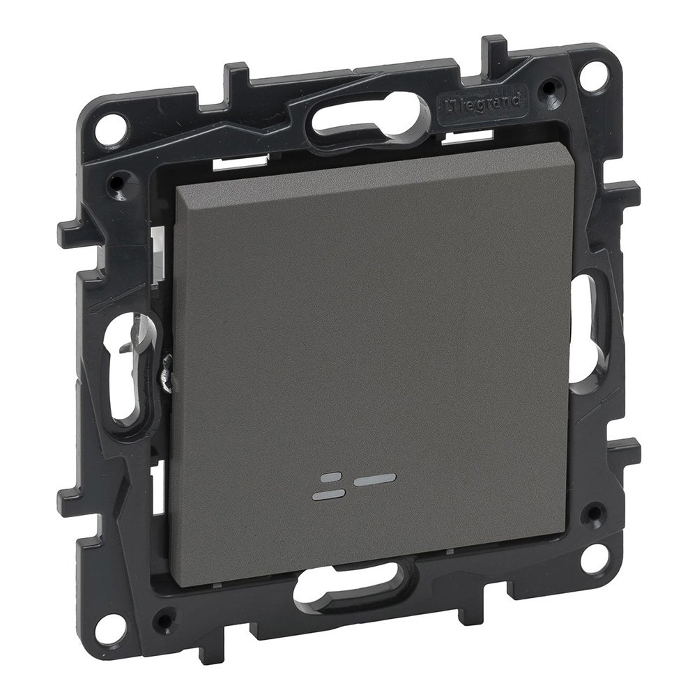 Переключатель 1-кл с подсветкой 10А, автоматические клеммы, Legrand Niloe Step 863416, cталь